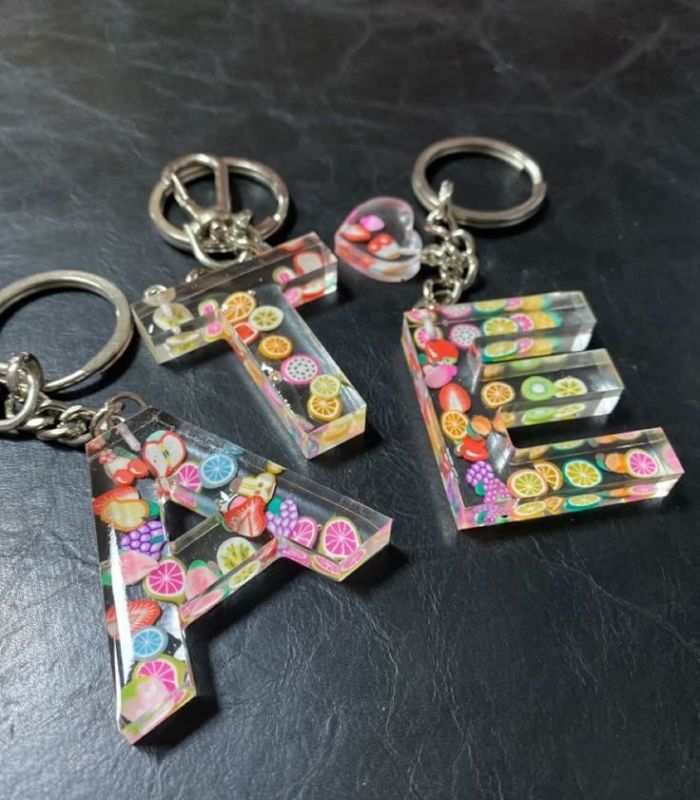 Resin alphabet keychain with fruit charm
